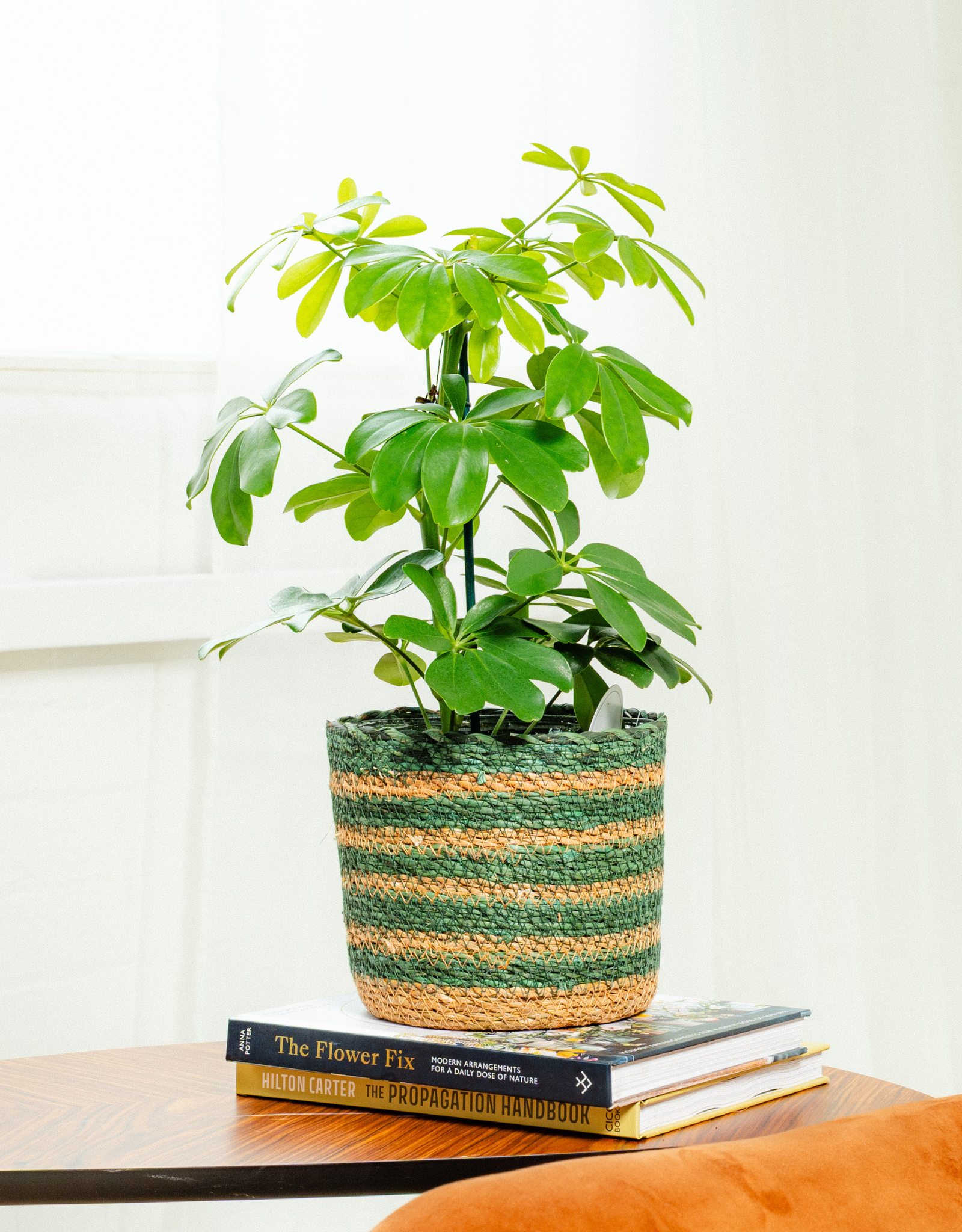Tall, sculptural, and effortlessly cool — the Schefflera actinophylla is a proper statement plant. Its glossy, umbrella-shaped leaf clusters give instant height and drama to any room, making it a favourite for bright corners, hallways, and office spaces that need a little life injected into them.