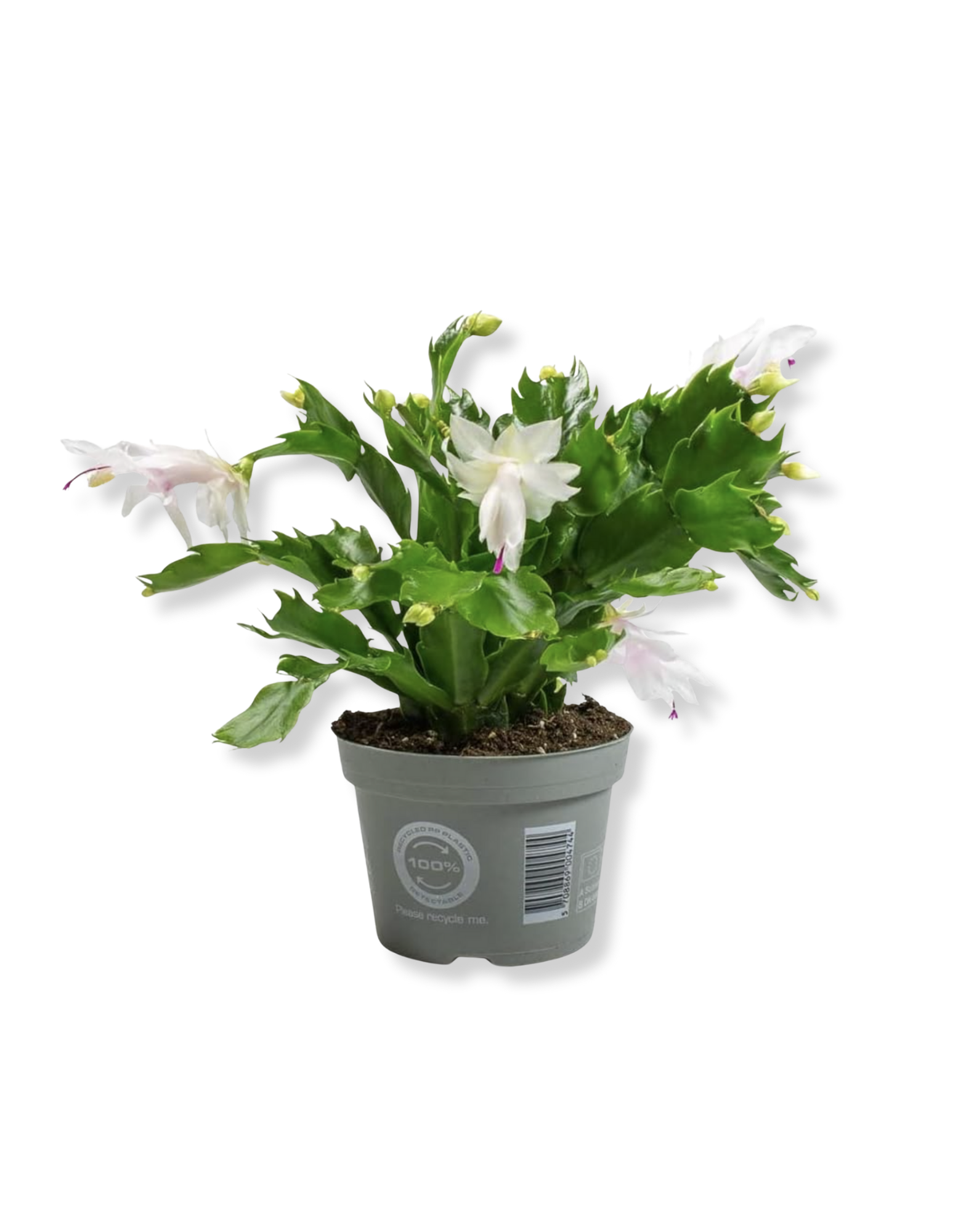 Unlike desert cacti, this one enjoys a little more attention. Its fleshy segmented leaves store water, but it still appreciates regular misting and a bright spot away from direct sunlight. Perfect for adding a soft splash of festive colour to your shelves or windowsill.