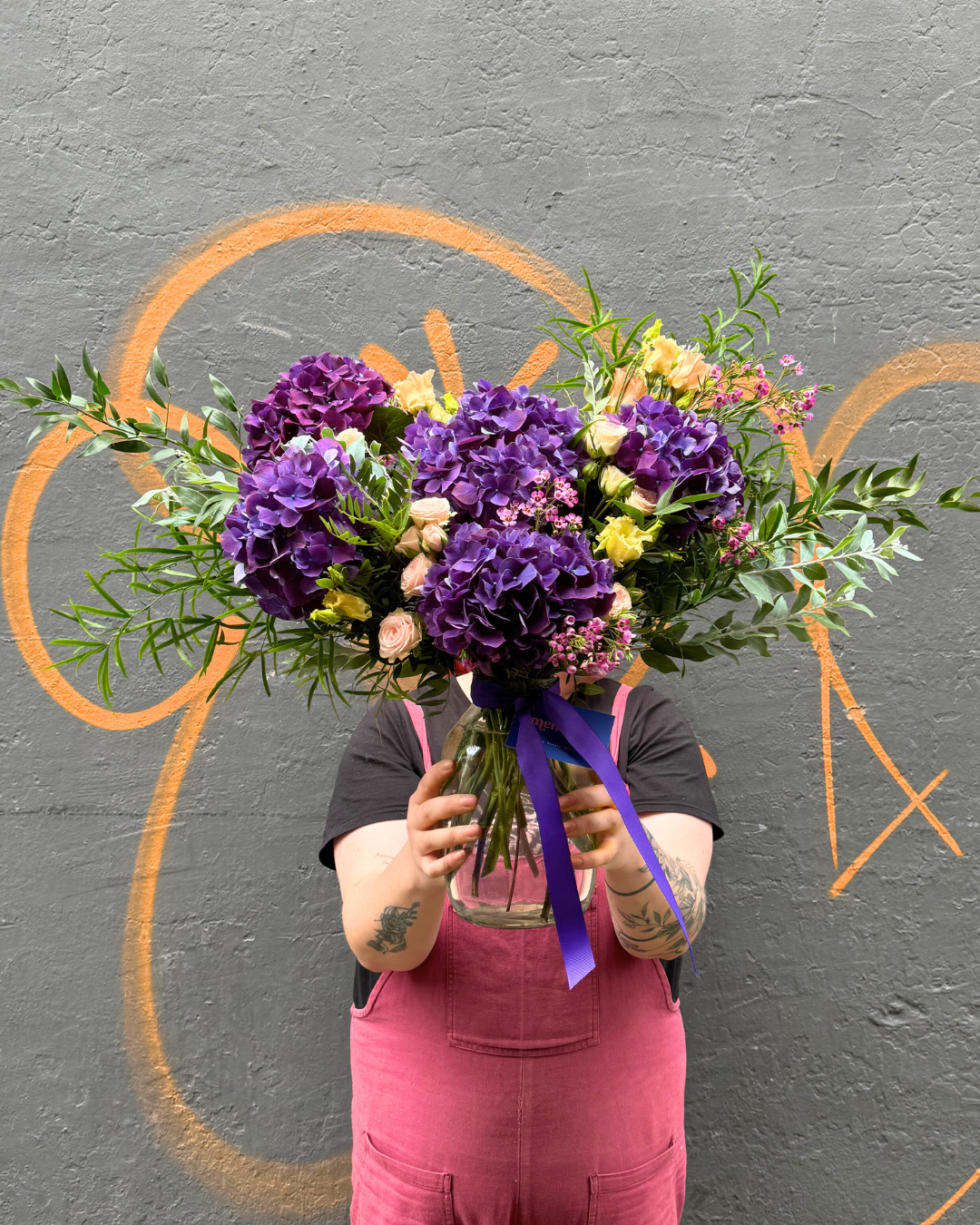 We don’t do “one size fits all” or “choose your colours” because we believe flowers should do their own thing, just like you. Our florists craft each piece from the freshest hydrangea stock at our flower bar, so the palette changes weekly and no two are ever the same.