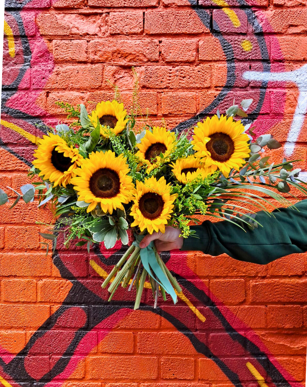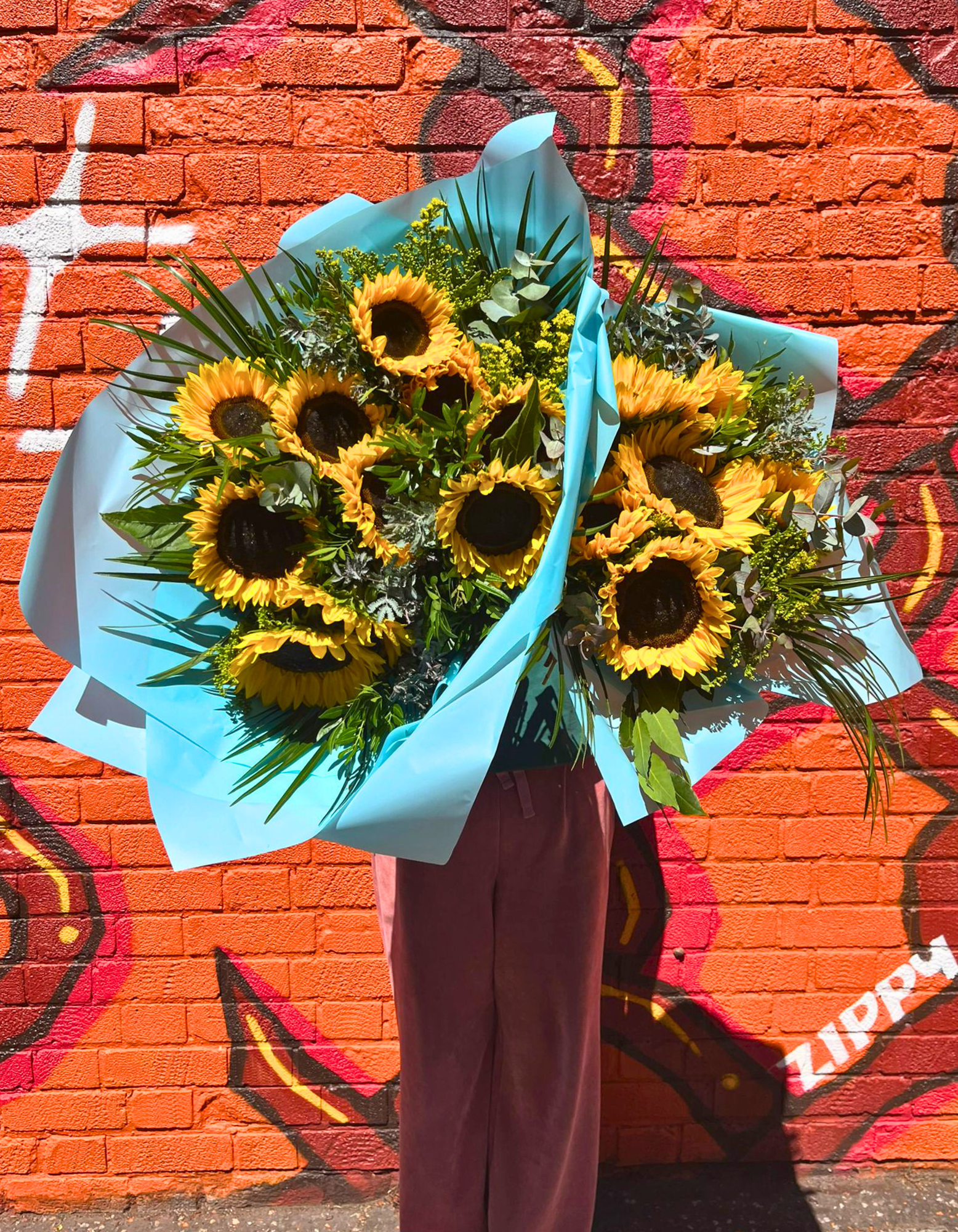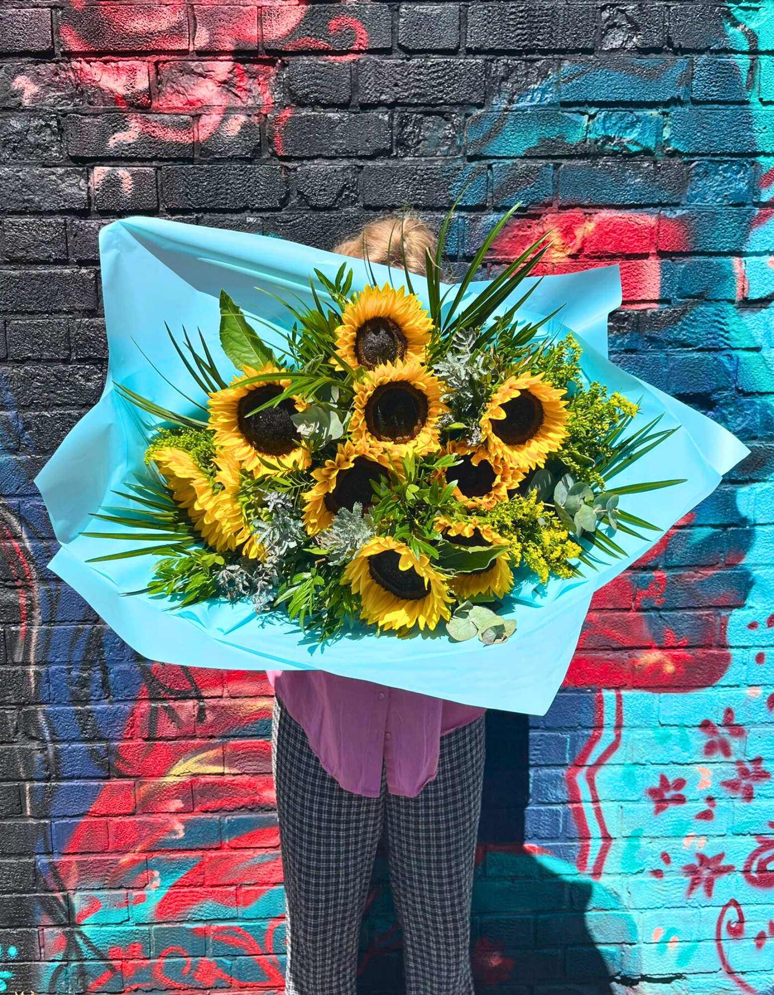 We don’t do “one size fits all” or “choose your colours” because we believe flowers should do their own thing, just like you. Our florists craft each piece from the freshest sunflower stock at our flower bar, so no two are ever the same.