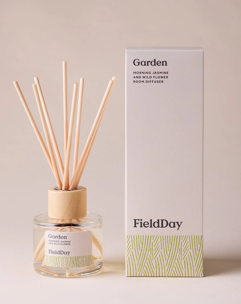 Morning Jasmine and Wild Flower Diffuser in a glass jar with wooden lid.