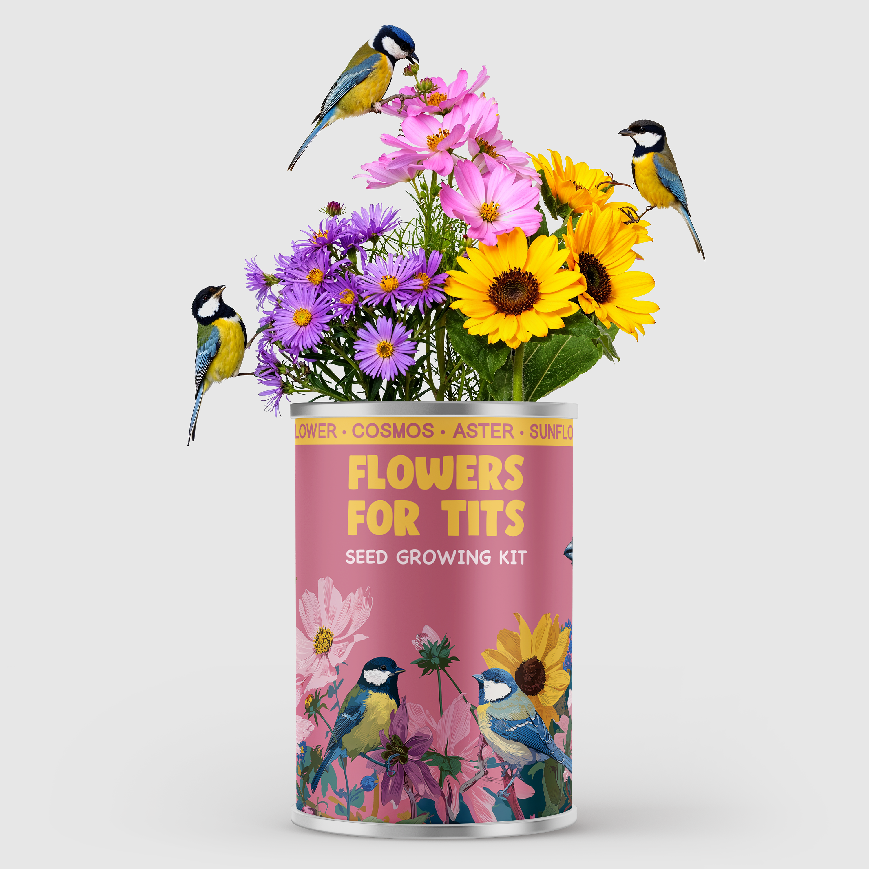 Bring a burst of colour to your garden while giving your feathered friends a treat with the Flowers for Tits Seed Growing Kit.