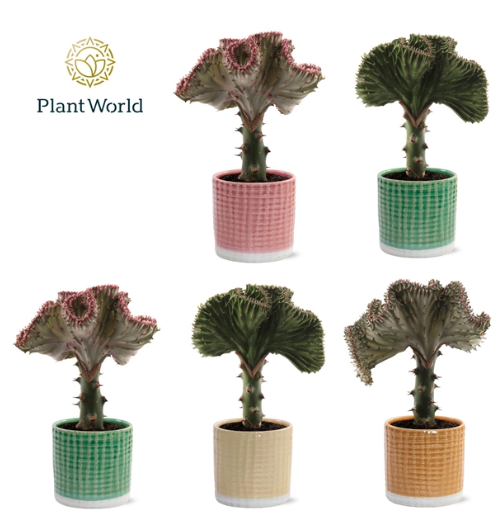 Euphorbia lactea cristata, commonly known as the Crested African Milk Barrel or Coral Cactus, is a striking succulent that stands out with its unique, wavy, crest-like growth. This fascinating plant features undulating, fan-shaped lobes that emerge from a central stem, giving it a shape resembling coral or a brain-like structure.