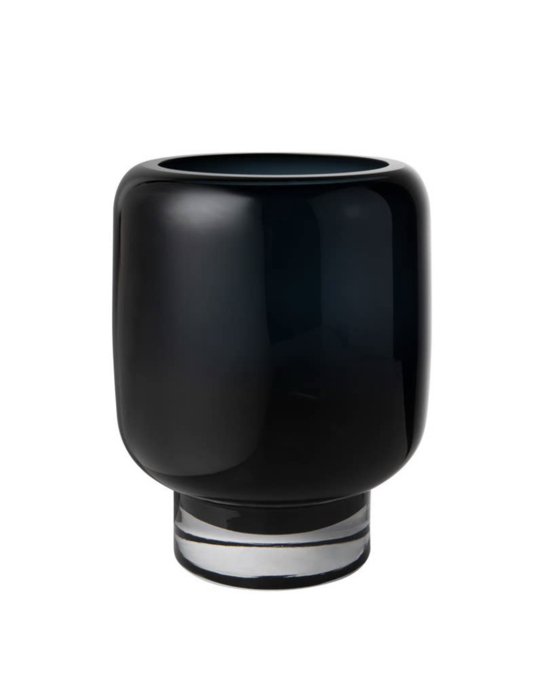 This vase from our LUXURY EDITIONS collections, meaning extra thick (9mm) heavy glass. This model is an icon of modern classic design, still is very trendy today. It's original shape expresses serenity, while robust it doesn't look too heavy and thanks to it's slimmer base. This is made of 9mm thick glass, the massive foot is heavy. These vases also become an eyecatcher without flowers, or sometimes contain other deco items. The purity of the glass is shown in it's base, it's of the clearest possible glass, form the highest level of manufacturing. The thickness of the glass expresses the deepness of the colors at it's fullest.