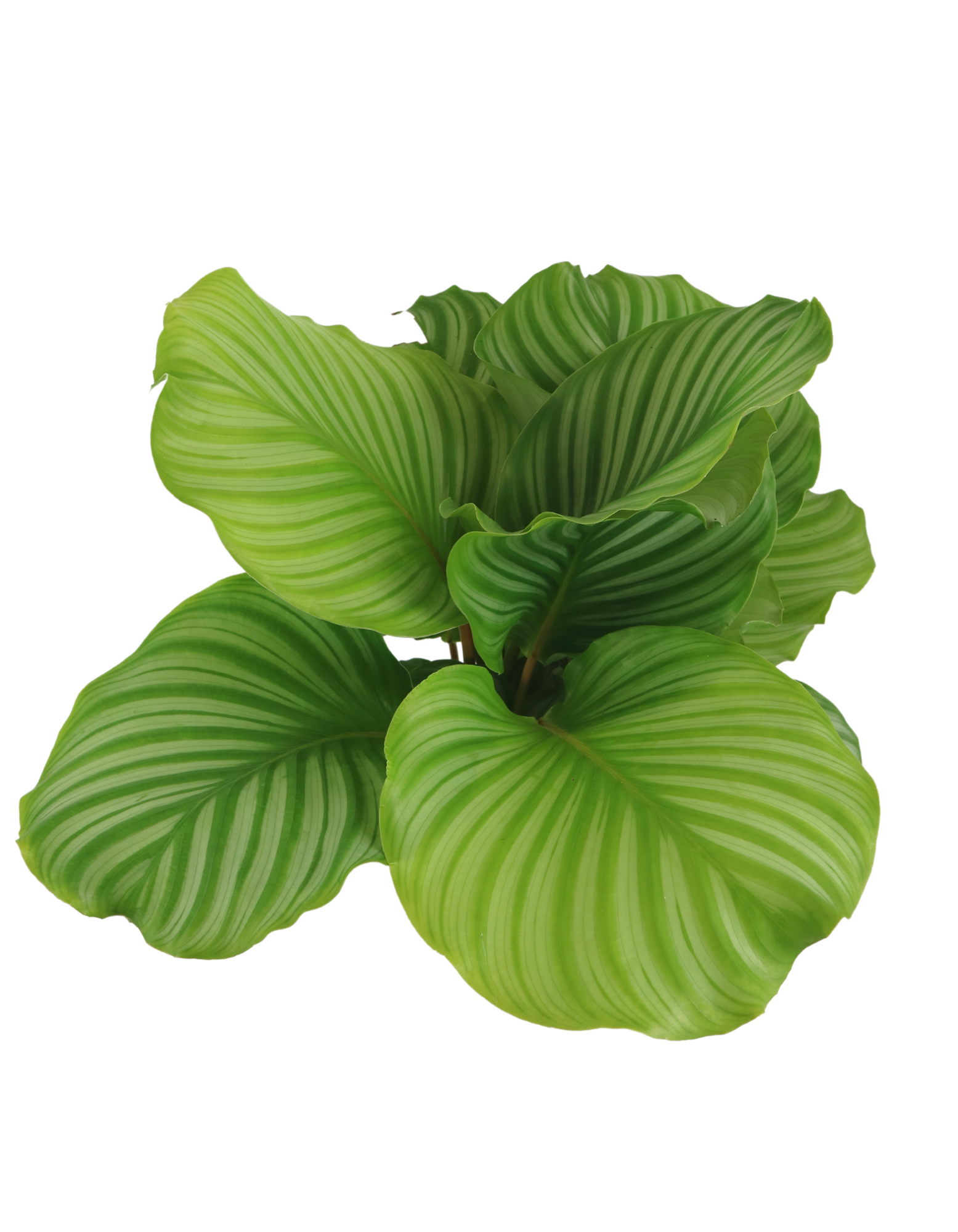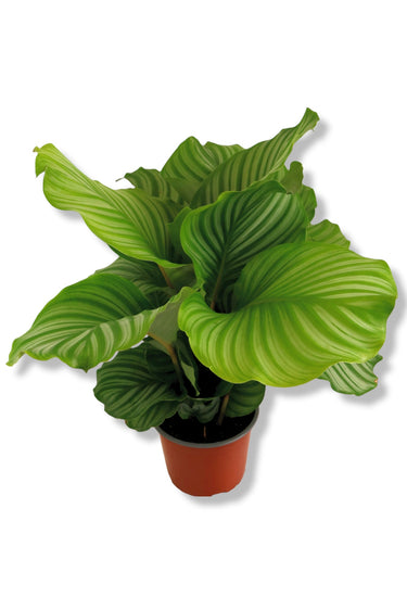 Calathea Orbifolia is a gorge highly sought after plant due to the beautiful large, round leaves and its air-purifying qualities. This foliage is subtly striped with pale silver-green markings, with the undersides of the leaf also being a pale silver-green.