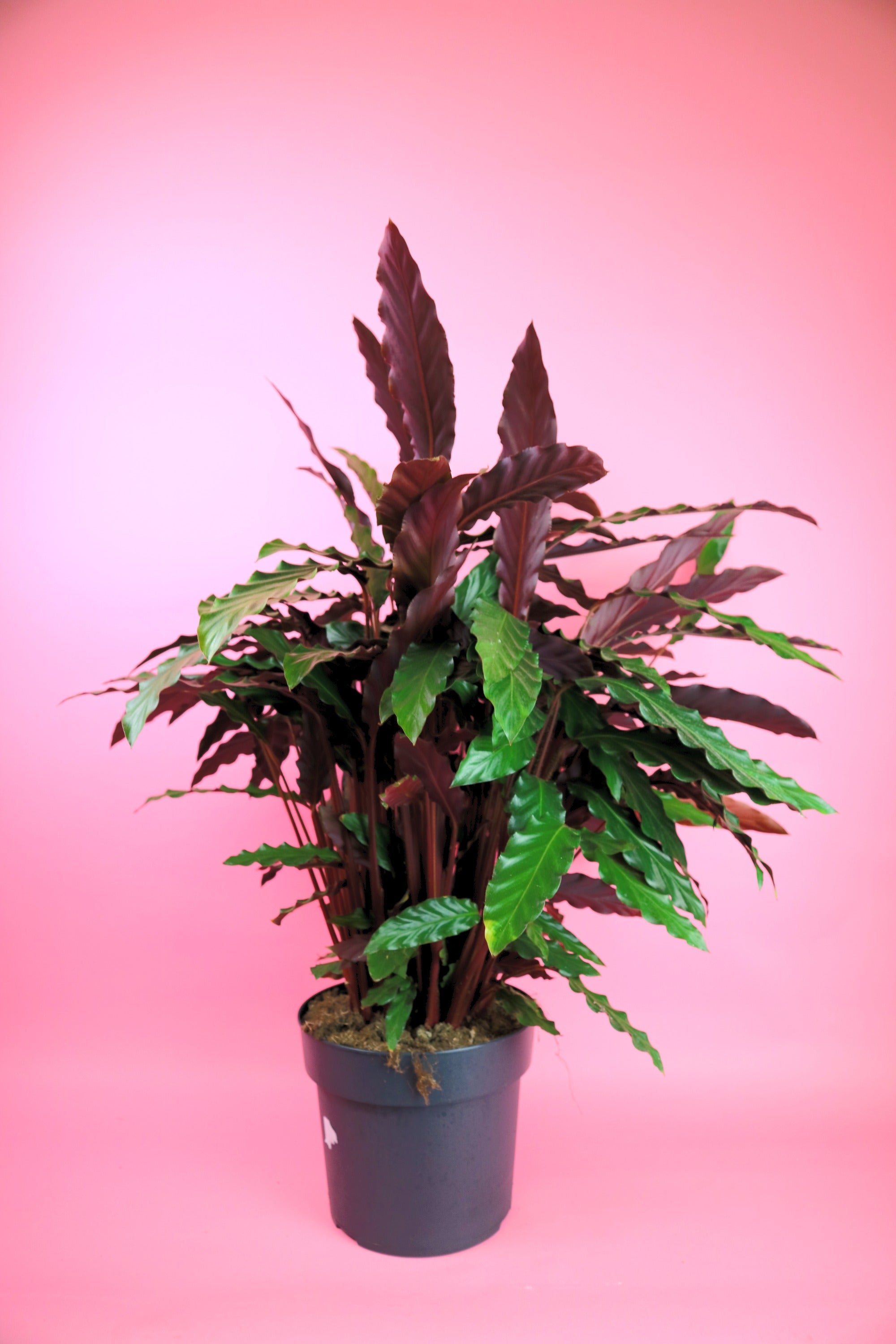 Calathea rufibarba also known as the Velvet Calathea due to the tiny hairs on its waxy leaves, is a tall Calathea variety with red stems and deep blue-green, elongated leaves with a dark purple underside.