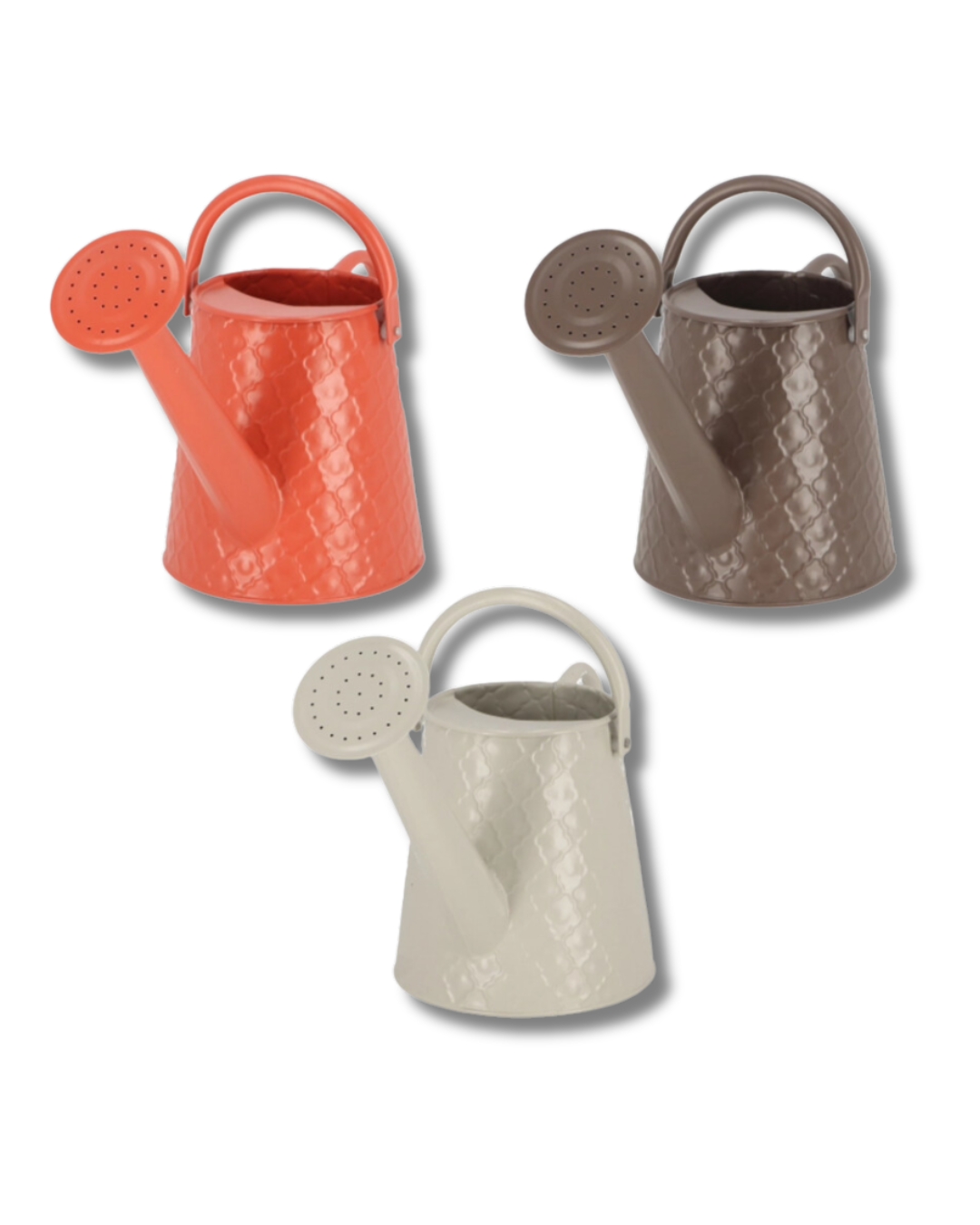 This watering can comes in three colours: Terracotta, Brown and Light Grey. This watering can is an embossed version of the traditional English watering can with top and side handles. It is ideal for watering garden plants. Its functional shape and reinforced spray head make this watering can suitable for everyday use. Choose between a direct water stream or a rain shower effect.