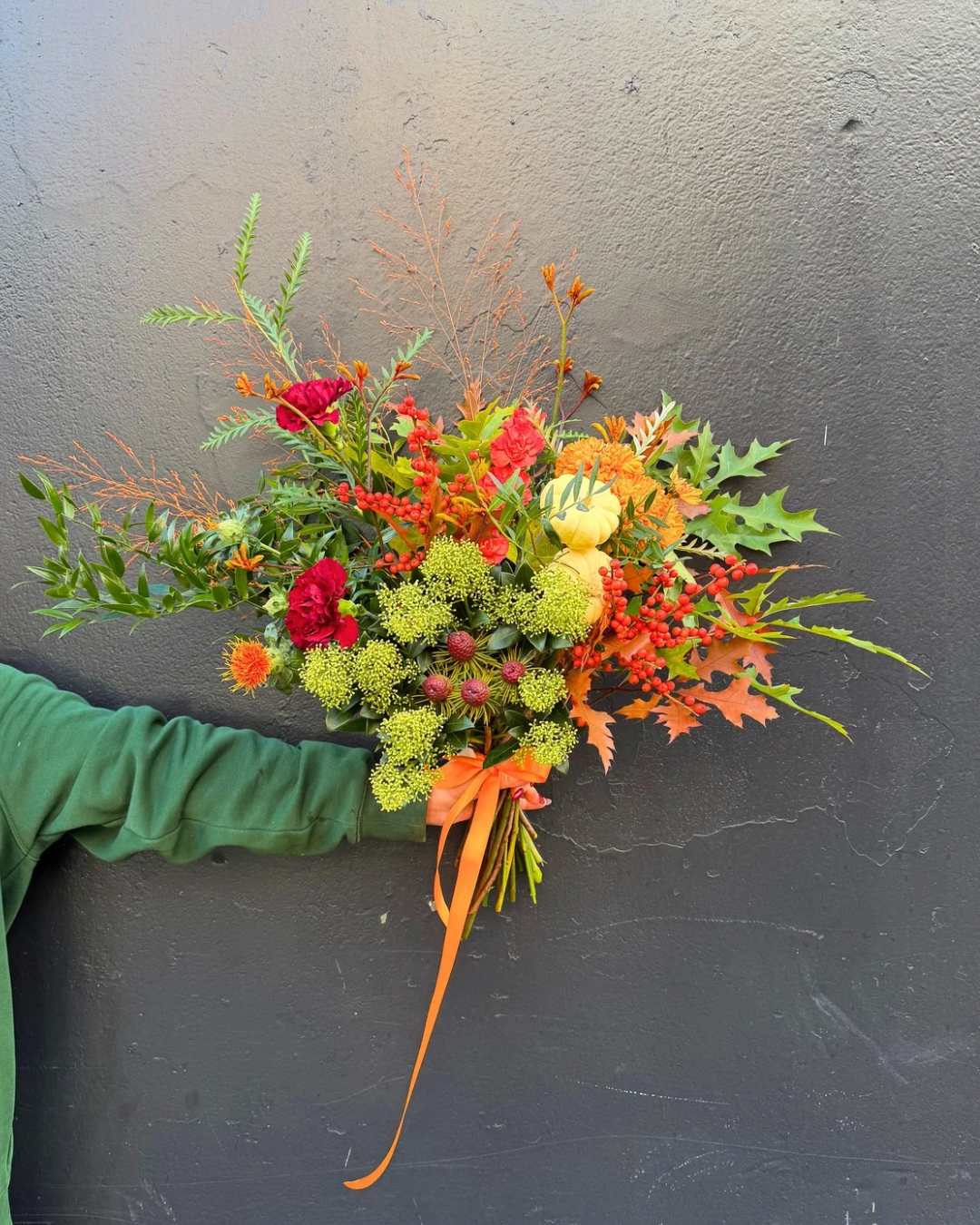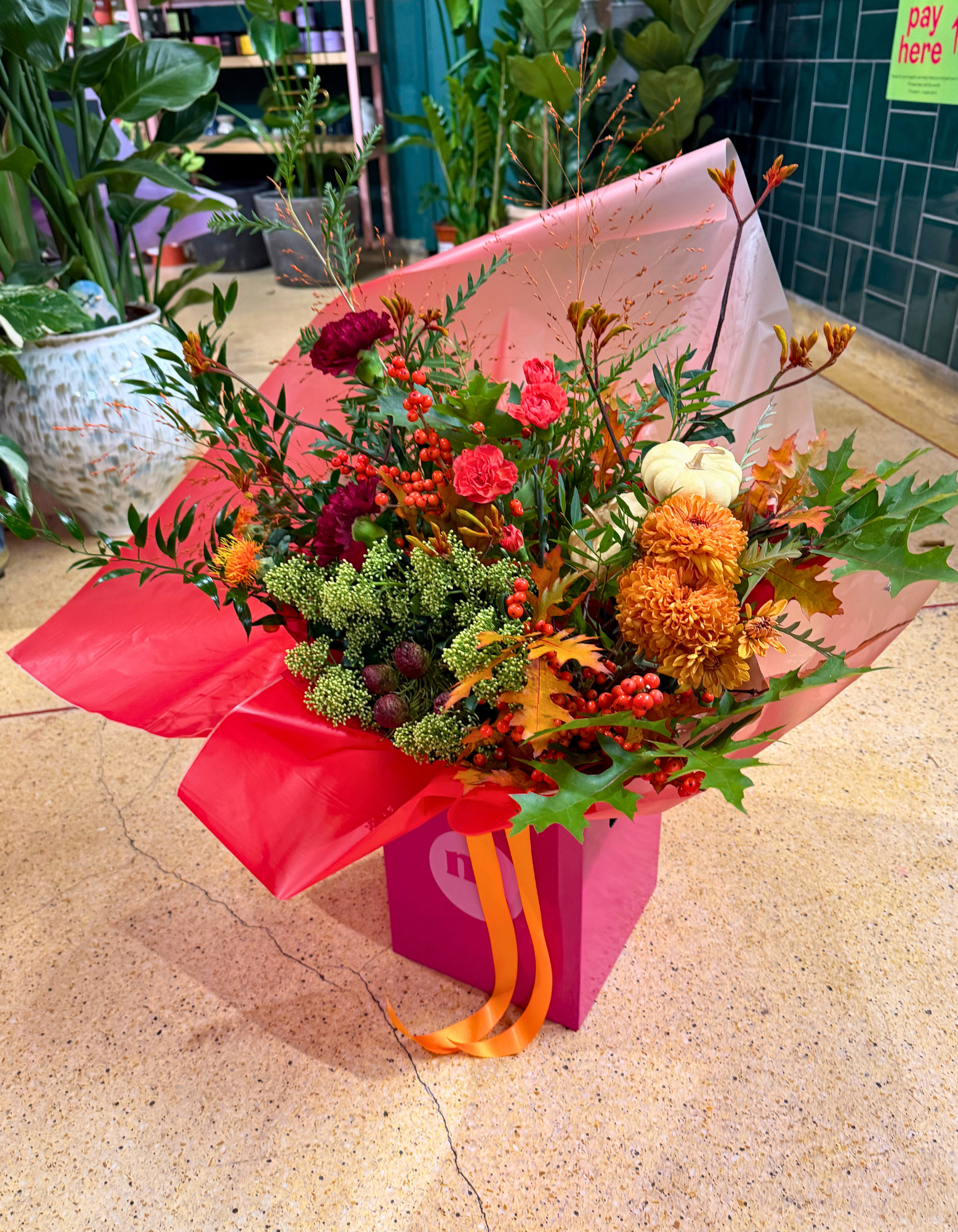 Designed to capture that golden hour glow before winter sets in, this one’s got everything we love about autumn, we're talking texture, tone, and a wee touch of spice. Each bouquet is crafted fresh from the best seasonal stems at our flower bar,  meaning no two are ever the same, but every one feels like November in full bloom.