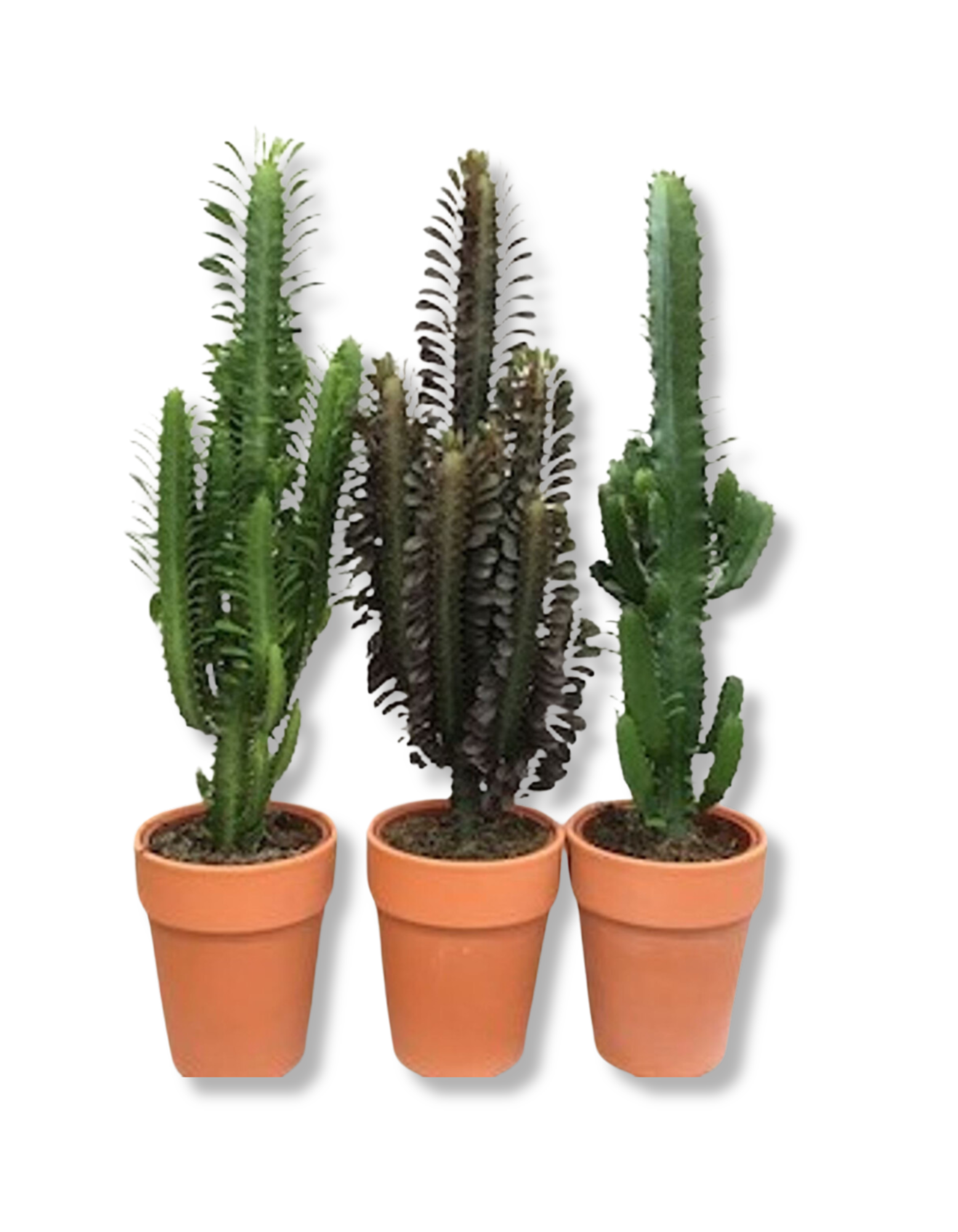 With their cactus-like looks and wide variety of forms, Euphorbia from tropical and arid regions make fascinating and easy houseplants. From small, ball-shaped curiosities to tall, branched shrubs, this mix brings a little desert drama indoors. Comes in a terracotta pot