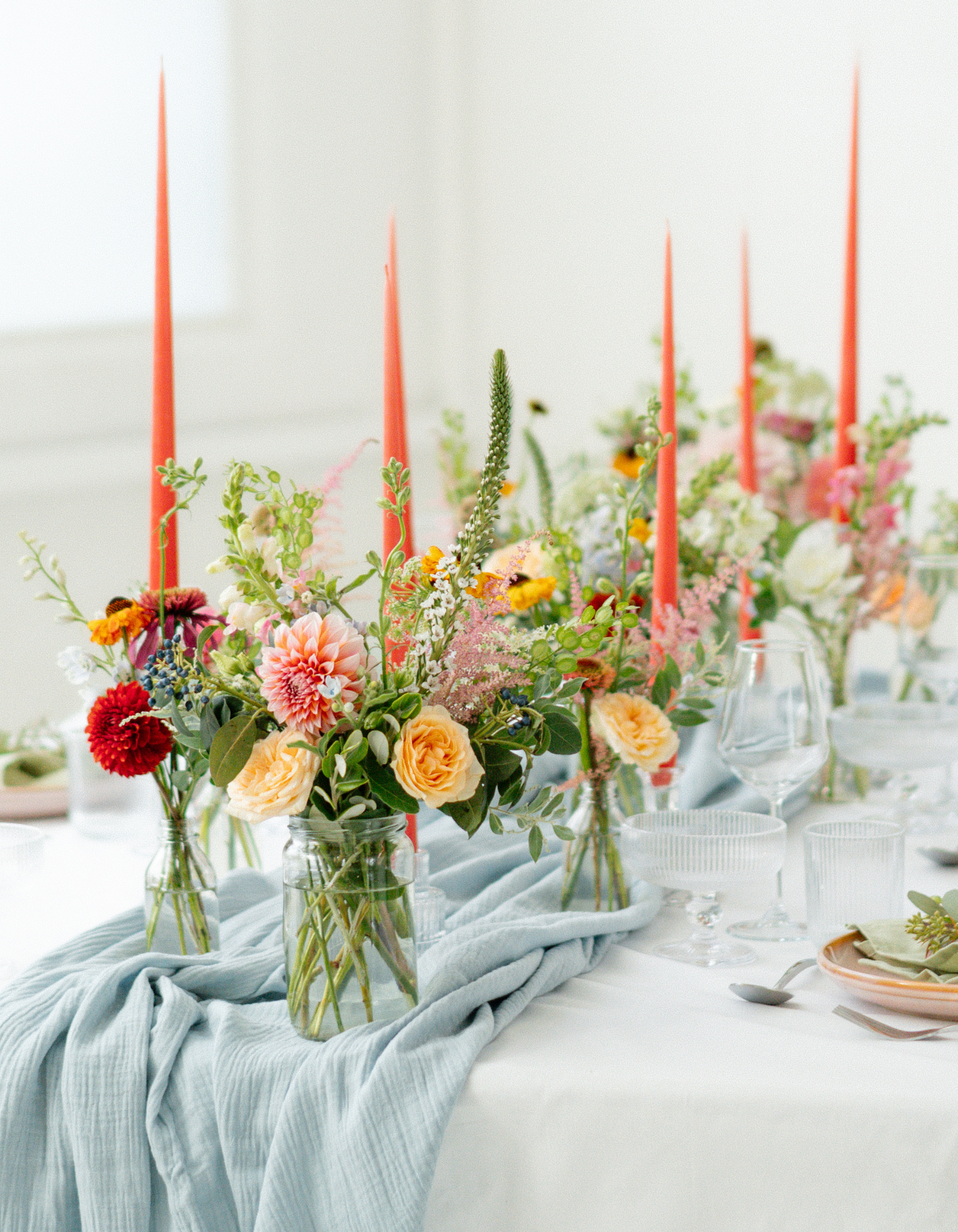 Perfect for styling together or mixing with our Filled Bud Vases, these trios look gorgeous running down a table, dotted along a mantel, or adding a pop of colour around your cake or welcome area. We’d recommend 2–3 Jars per 6ft long or 5ft round table for the perfect tablescape.