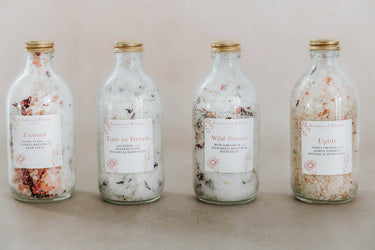 Our bath salts are lovingly and carefully handmade to support both physical and emotional wellbeing. We use Pink Himalayan, Dead Sea, and Epsom salts, blended with pure essential oils and sprinkled with dried flowers to create the perfect moment of calm.