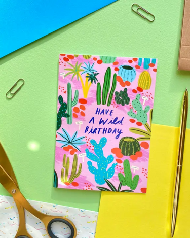 Celebrate in style with this quirky green-themed birthday card by Northern Irish designer Kerrie Illustrates - perfect for plant lovers, green thumbs, and wild-at-heart birthday people!