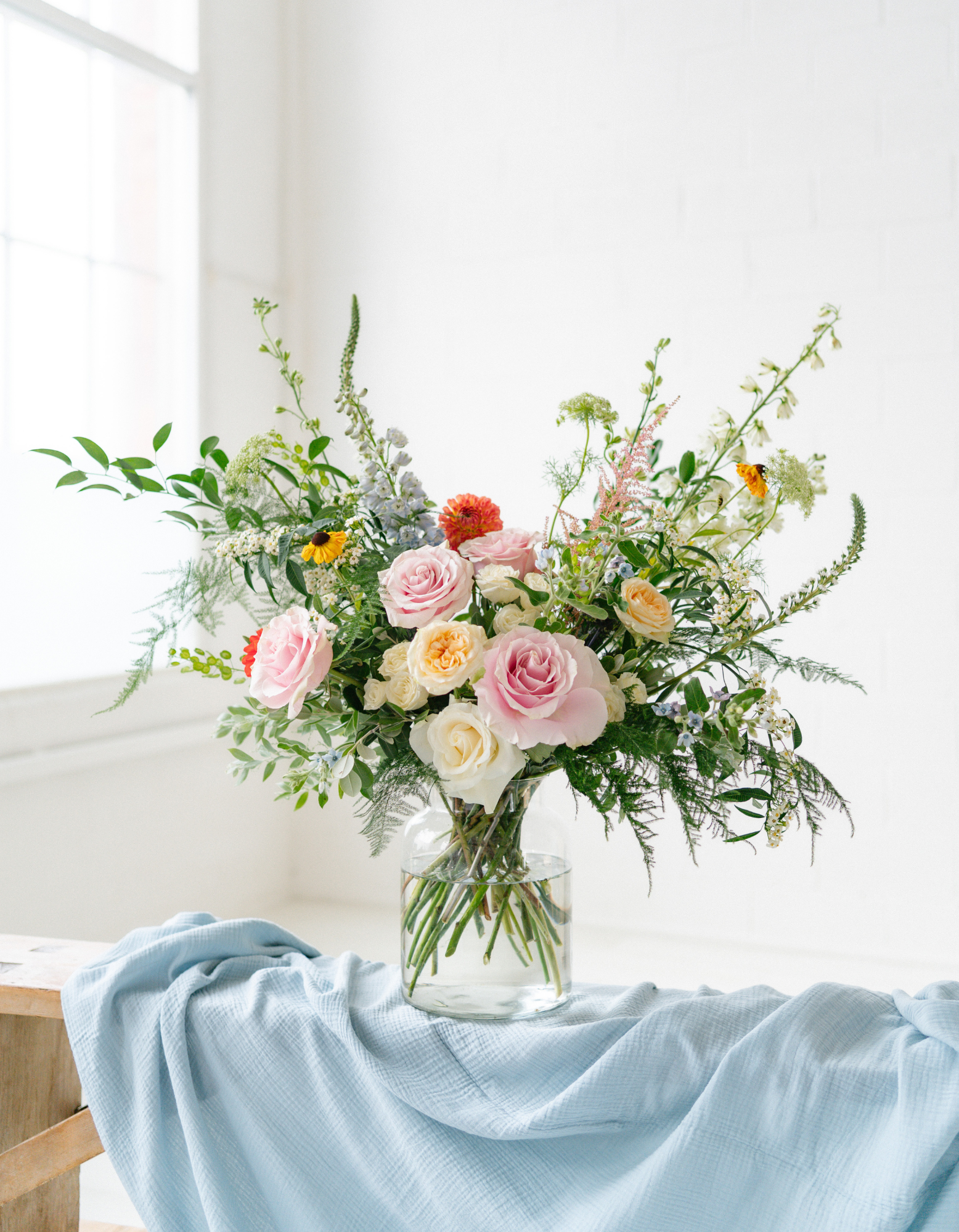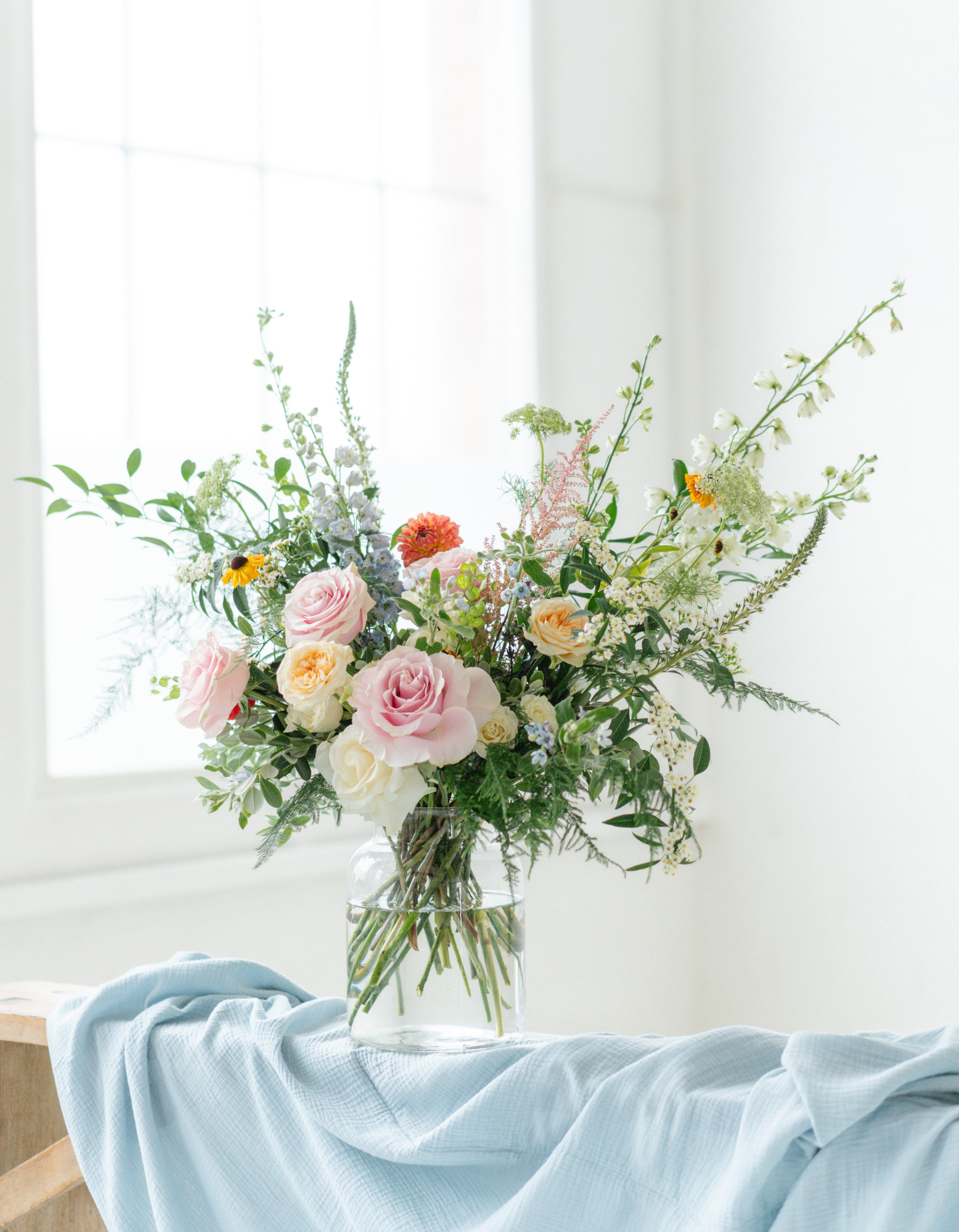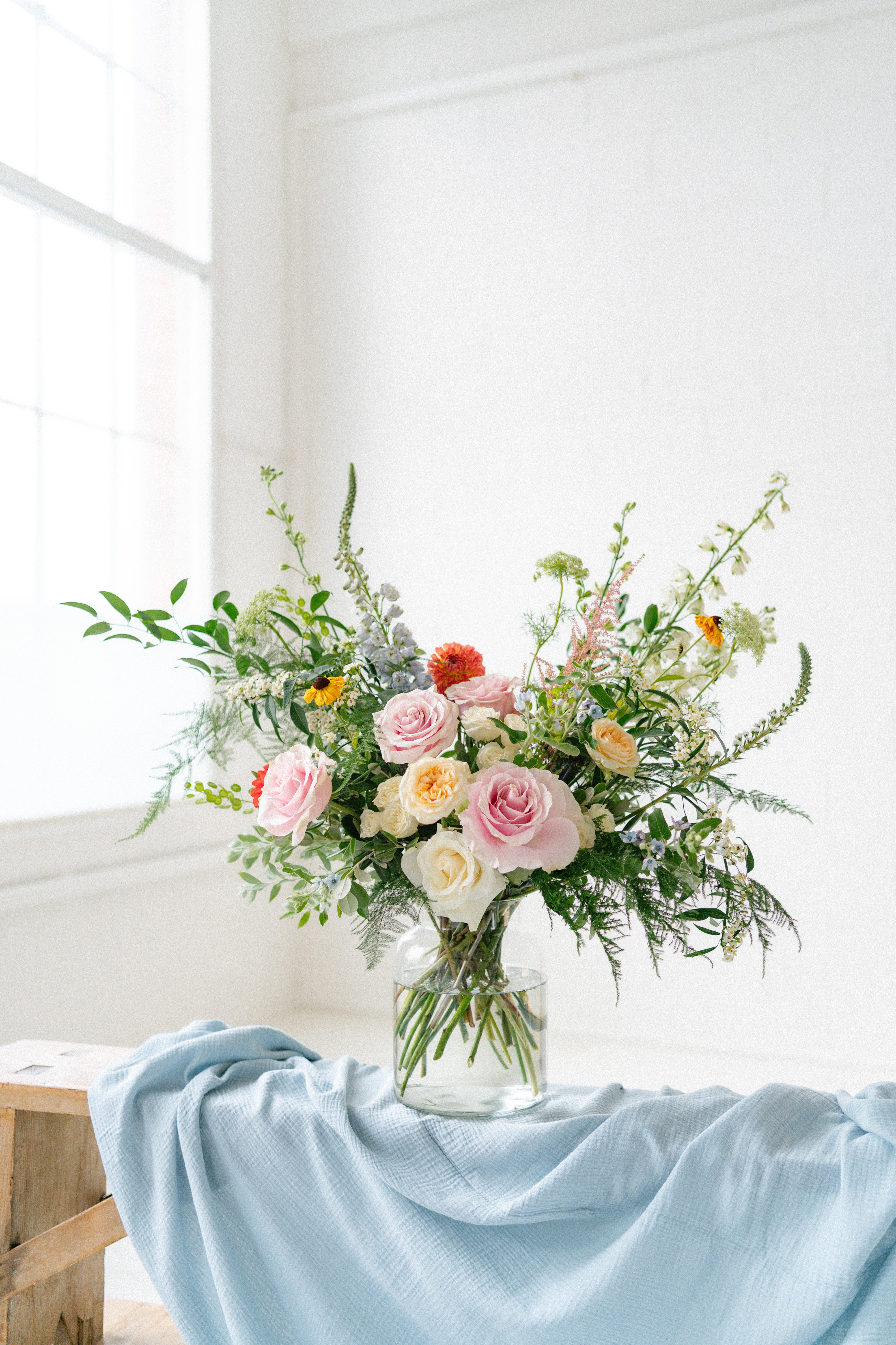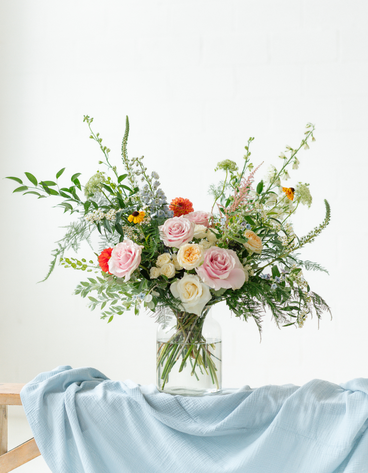 Comes styled in our vases, rented just for your event. Once your order’s confirmed, we’ll be in touch to lock in the details and deposit (£15 per vase), and yes, we’ll need the vases back, we’re very precious them!)