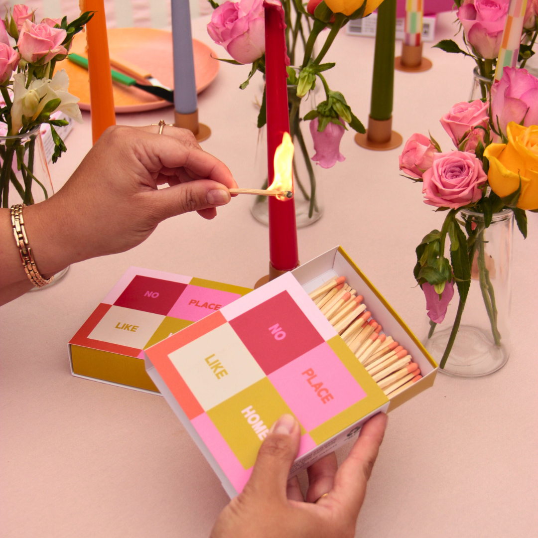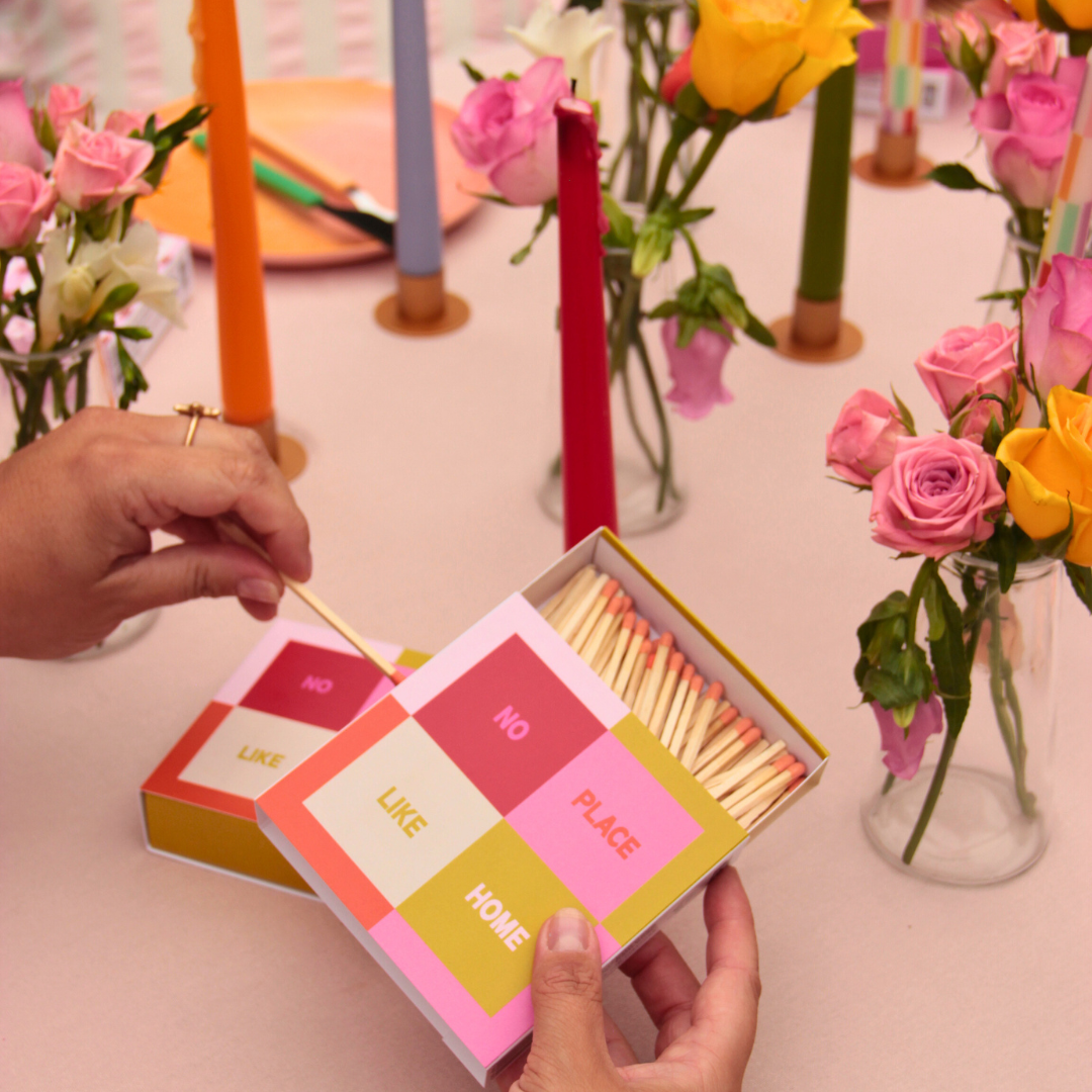 No Place Like Home Square Matchbox with Orange Tip Matches