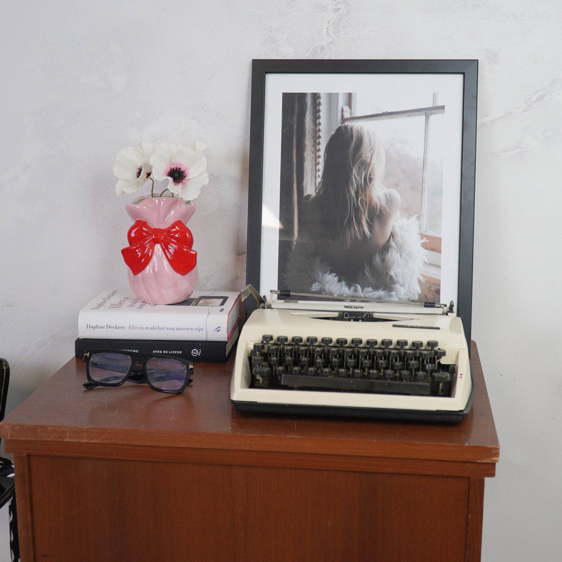 This combination of simplicity and striking details makes the vase a true eye-catcher on your table, sideboard, or windowsill. Whether you choose a single flower, a small bouquet, or nothing at all, this vase always adds a warm and cozy atmosphere to any space. Perfect as an original gift or to treat yourself!