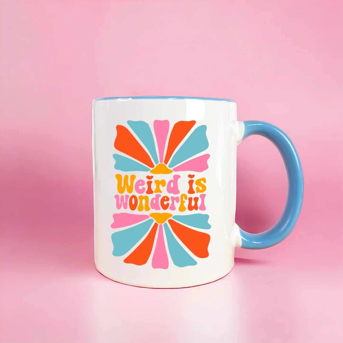 This retro mug is a celebration of YOU! The vibrant boho flower and the message "Weird is Wonderful" is a reminder that your quirks and individuality are what make you so amazing.